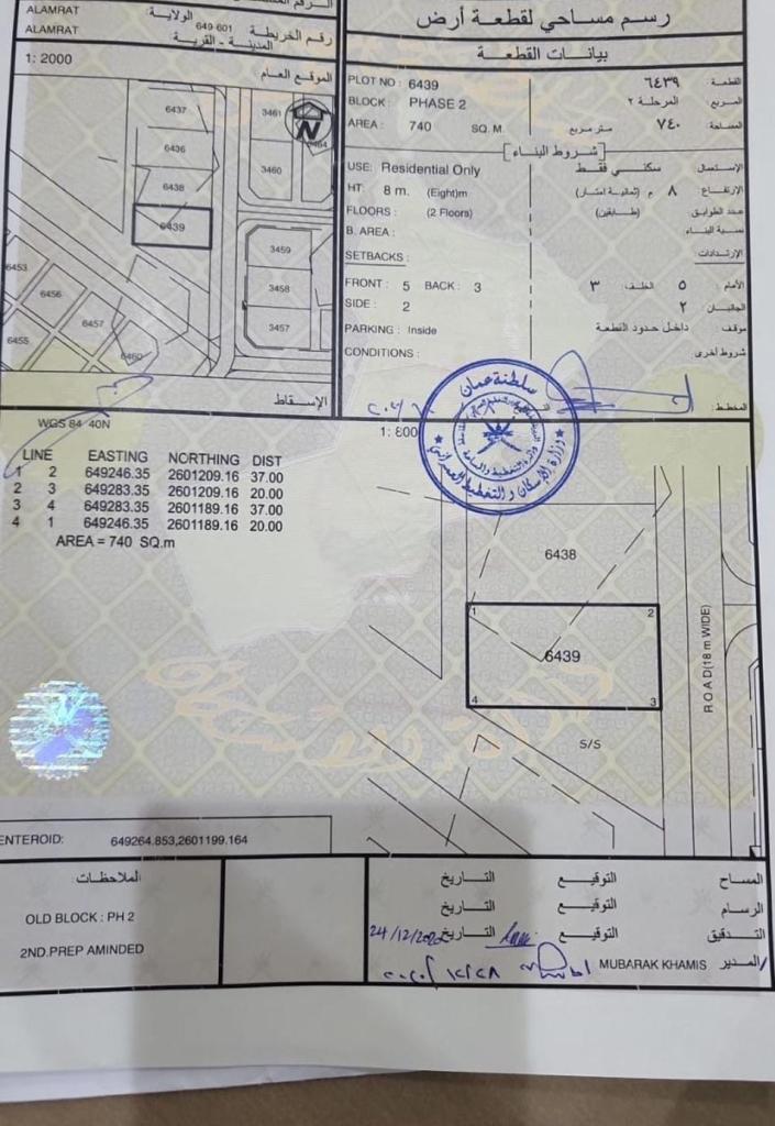 ارض سكنية بمرتفعات العامرات الثانية