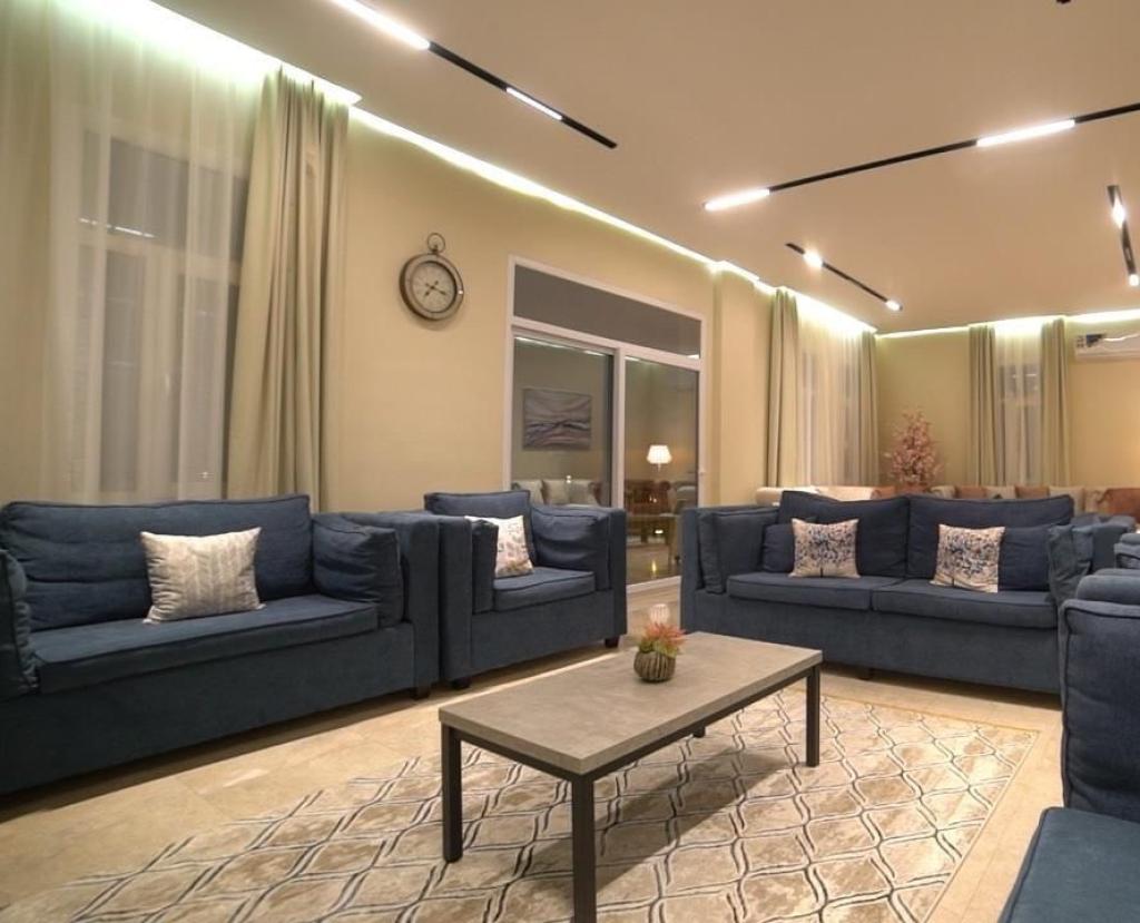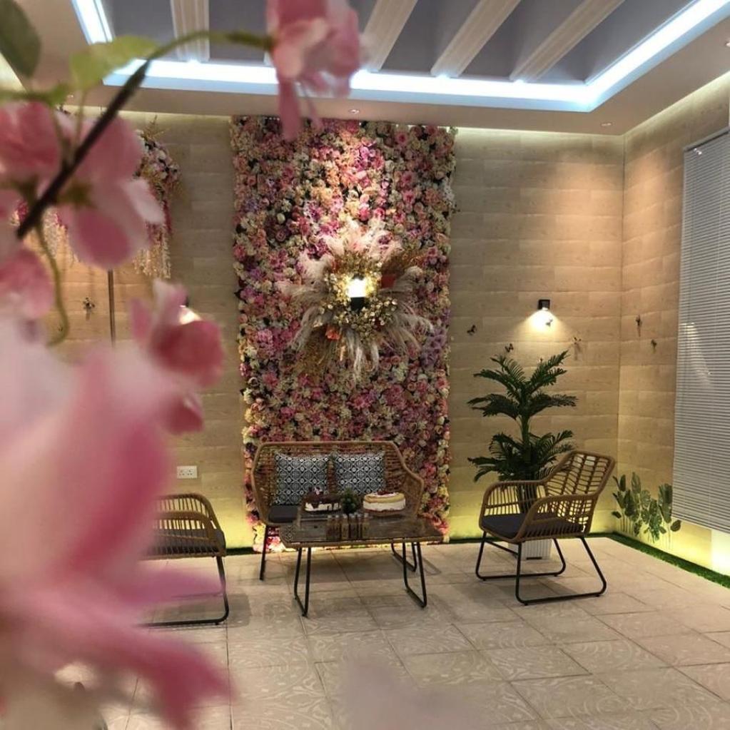 ومطبخ خارجي و صاله كبيره و ركن للكافي وحديقه داخليه بها جلسات