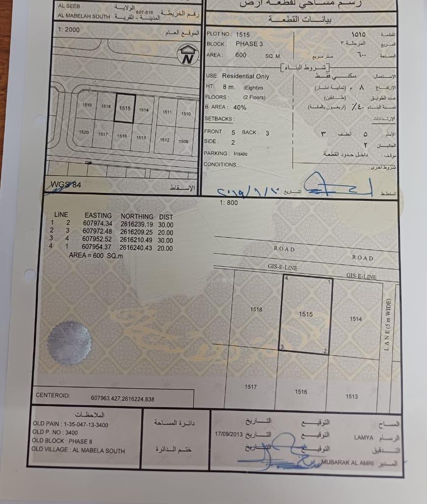 ?? سكنية المعبيلة الثامنة رقم الأرض 1515 مساحة 600 متر وسطية على شارع مرصوف أمامها مواقف واسعة امام الجامعة العربية المفتوحة على أول خط من الشارع الرئيسي ✨مطلـــــــوب 47,000 ألف صافي https://omanreal.com/g/43dn