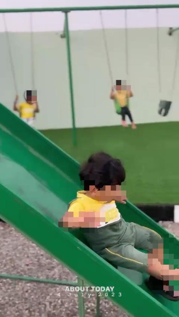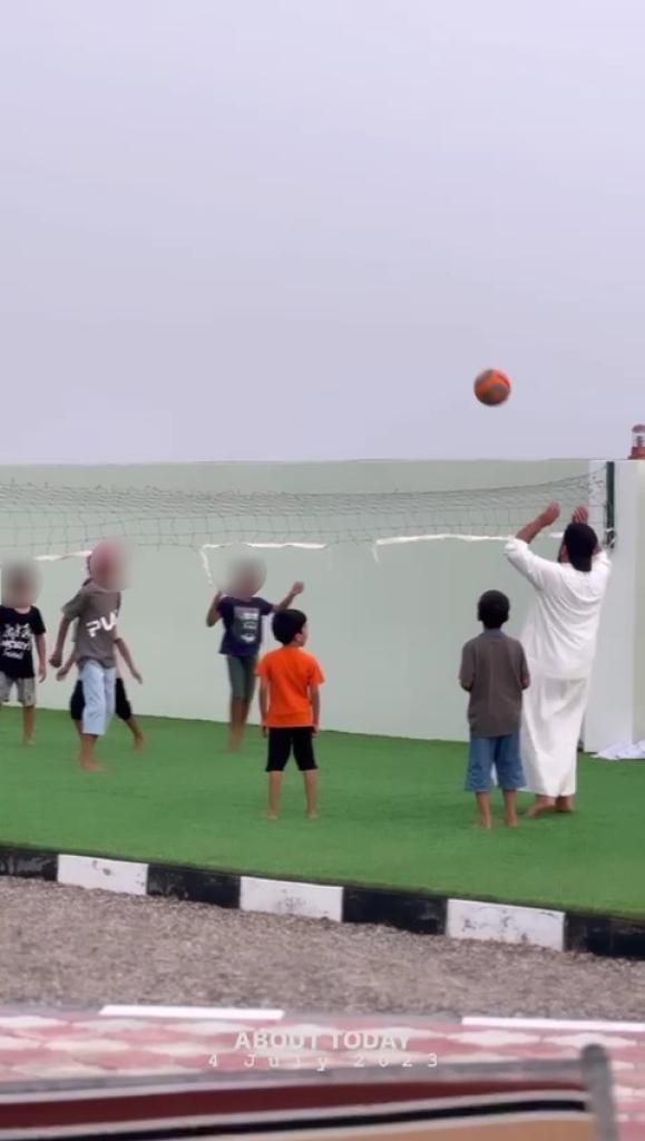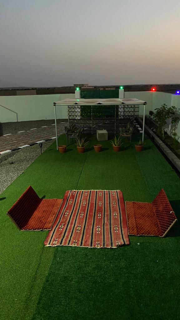 فيها ملعب كرة قدم /كرة طائر/جلسة مفتوحة كبيرة /جلسة سعفية/ألعاب أطفال/ وحوض يعبى ماء جديد عند الطلب