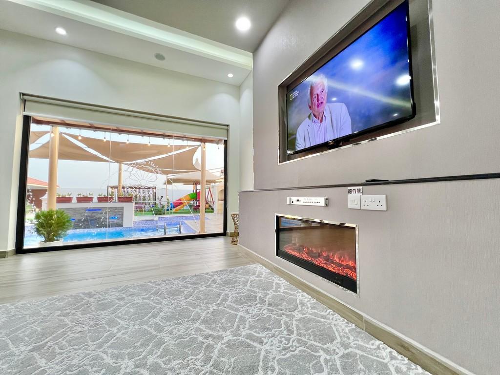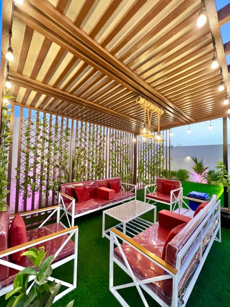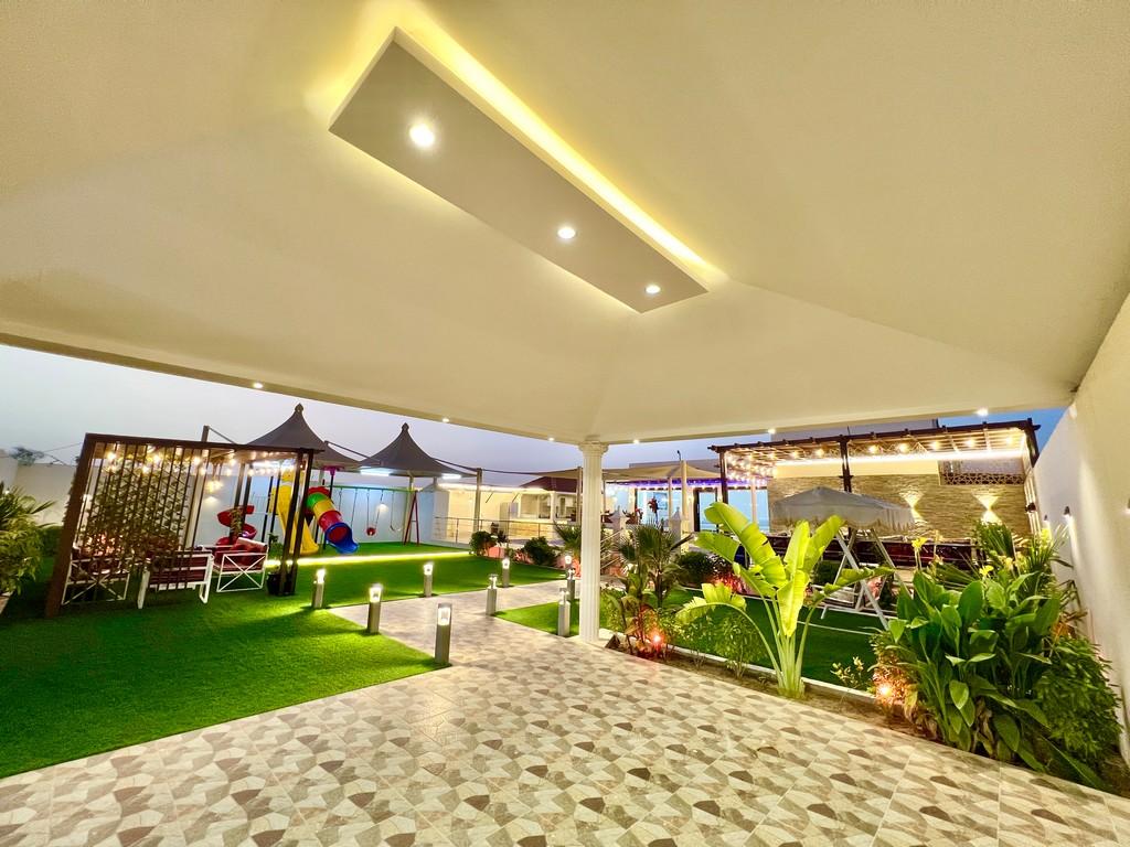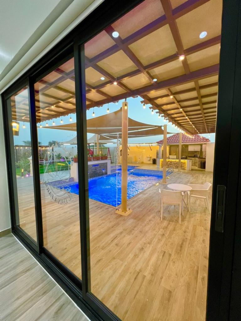 ? صالة كبيرة مطلة ع الحوض ومجهزة بسماعات ونظام تشغيل صوتي??