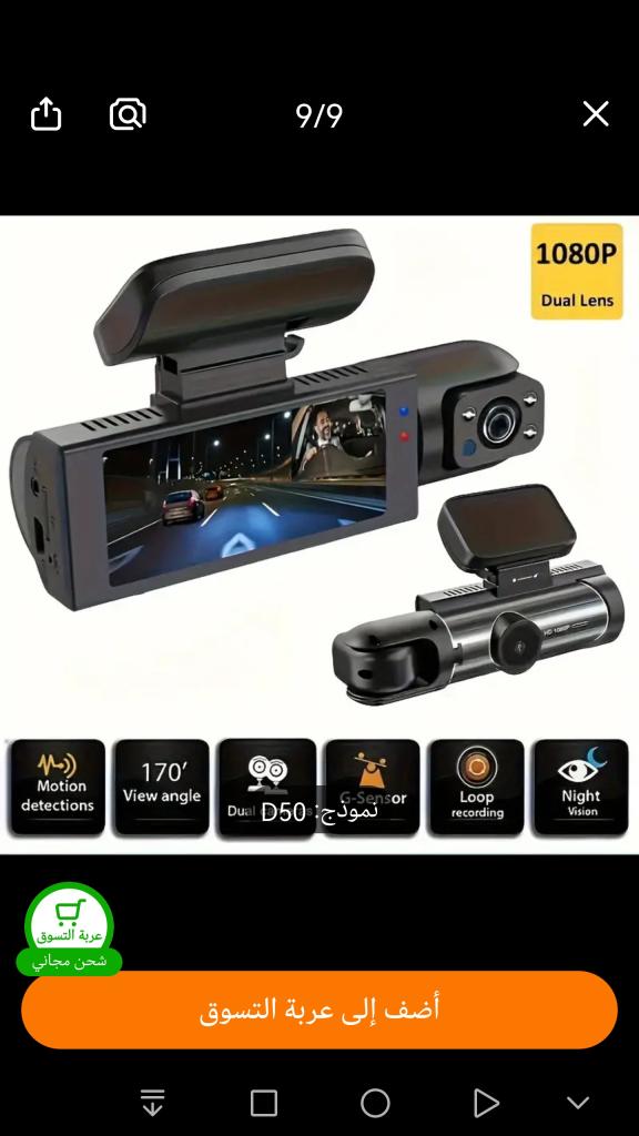 داش كام (كميرا) امامي داخلي دقة عالية تحفظ حقك من الحوادث لاسمح الله، حجم صغير ووزن خفيف، يوجد بها شاشة لرؤية التصوير، رؤية ليلية تسجيل دائري بزاوية واسعة.