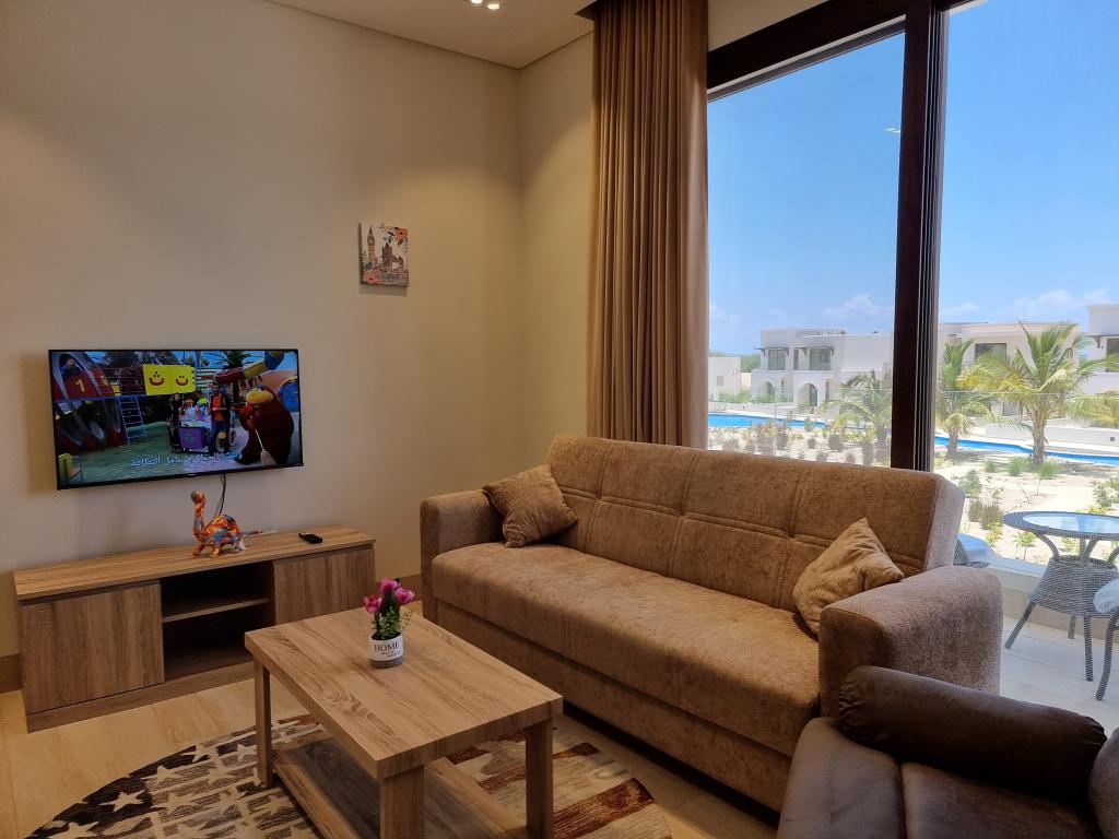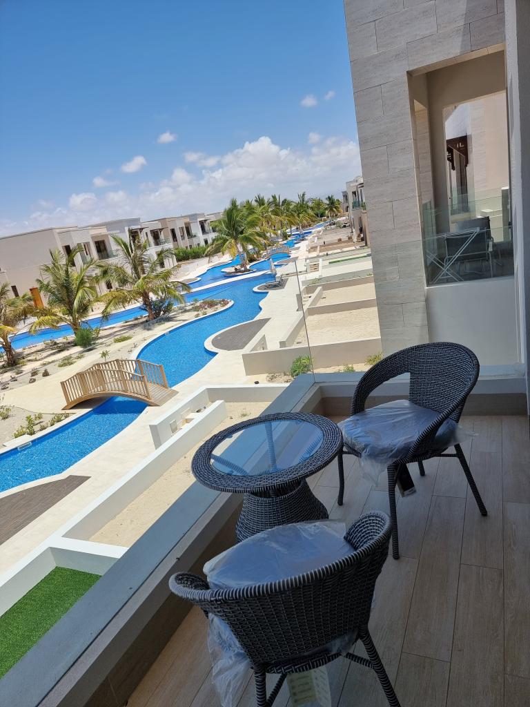 ١- نوع العقار : شقة عبارة عن استوديو سكني في منتجع هوانا صلالة مطل على مسبح