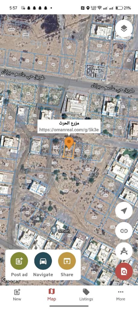 ✨فرصة استثمارية للبيع ارض تجارية في بركاء مزرع الحرث.