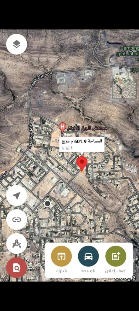 ✨ الأرض مستوية،على شارع قار قائم ،وسط منازل وفلل قائمة تحت الطبيعية الخلاب في منطقة سياحية غني عن التعريف وقريبة من مستشفى جبل الأخضر.