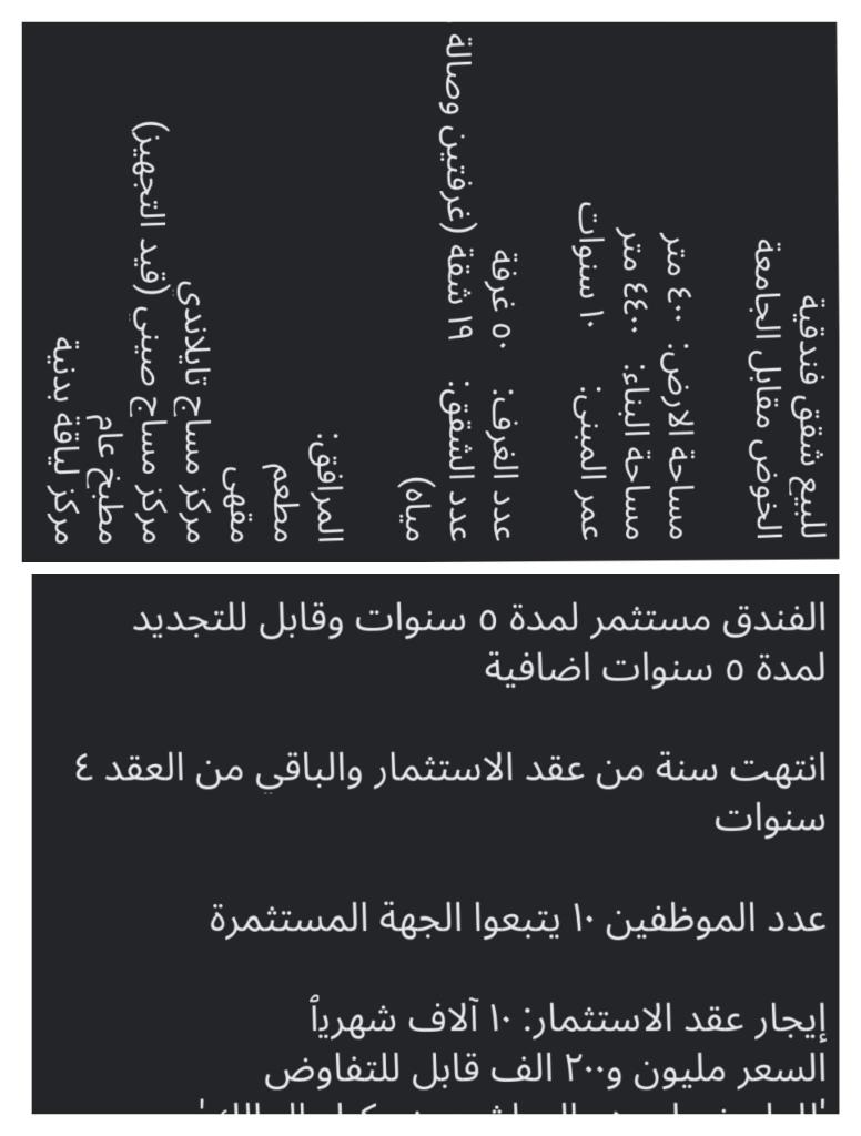 الفندق مستثمر لمدة ٥ سنوات وقابل للتجديد لمدة ٥ سنوات اضافية