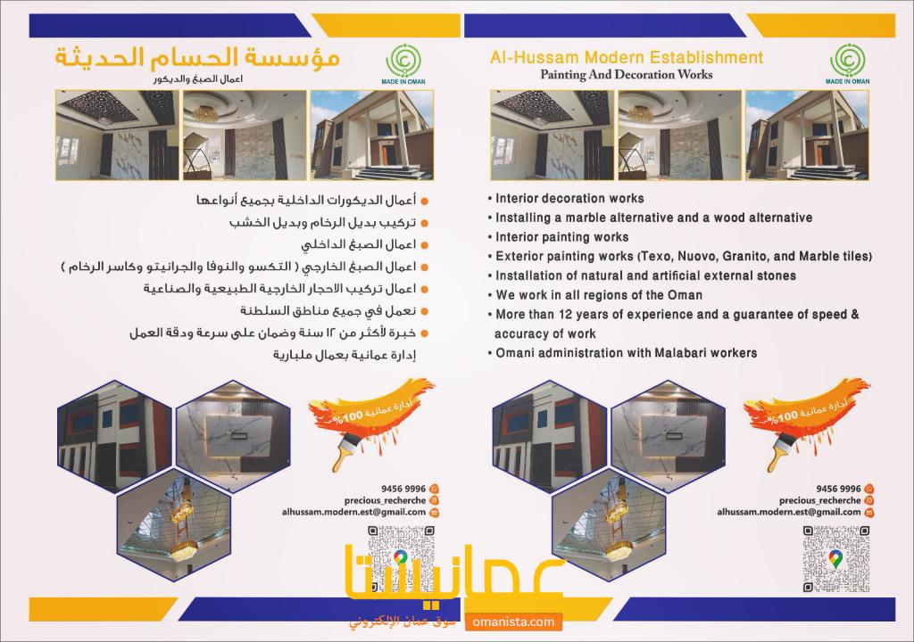 أعمال الصبغ الداخلي والخارجي والديكورات الداخلية | سوق عُمانيستا 2026