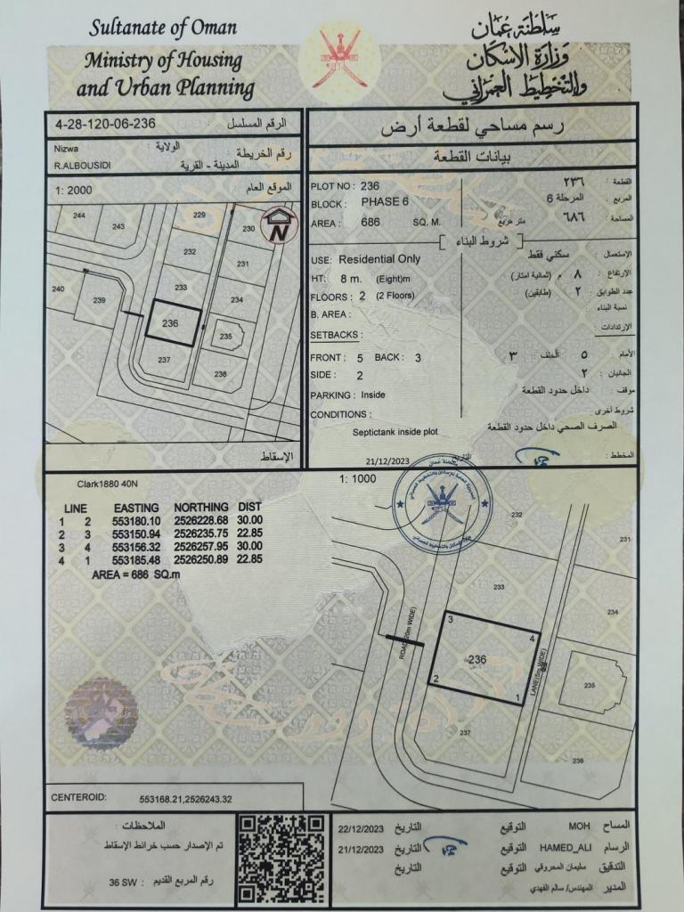 أرض للبيع في نزوى ردة البوسعيد 6 شرق مستشفى نزوى
