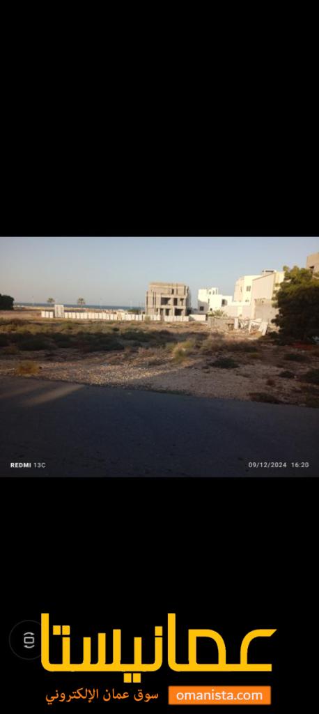 ✨الارض مرتفعة قليلة من الامام ومائلة قليلا من الخلف،على شارع قار قائم، ثالث خط من البحر ،وبإطلالة رائعة على الشاطئ،وسط فلا قائمة وقريب من الخدمات.