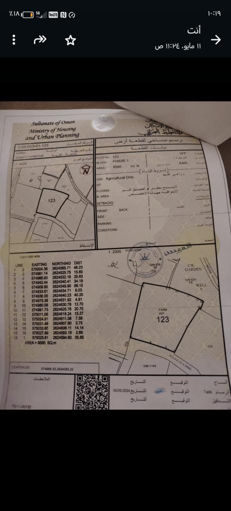 مباشره للبيـــــــــــــع مزرعه بركاء السوادي طماطم شمال الشارع العام