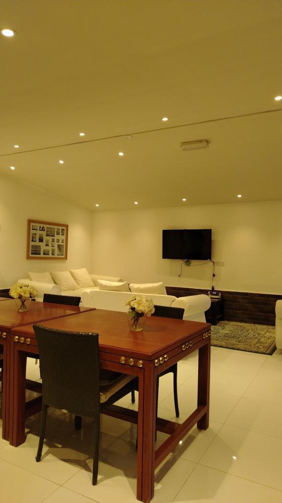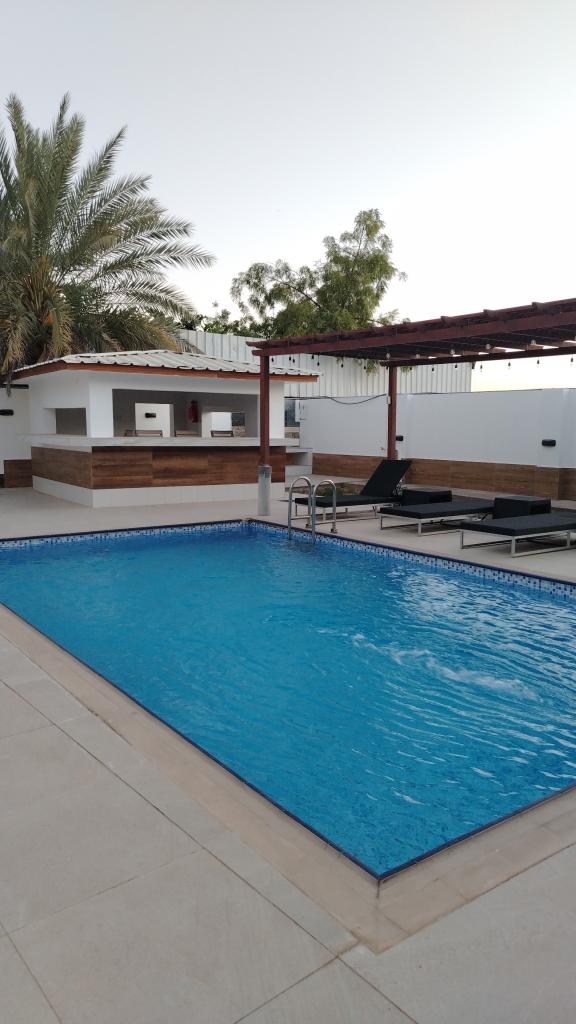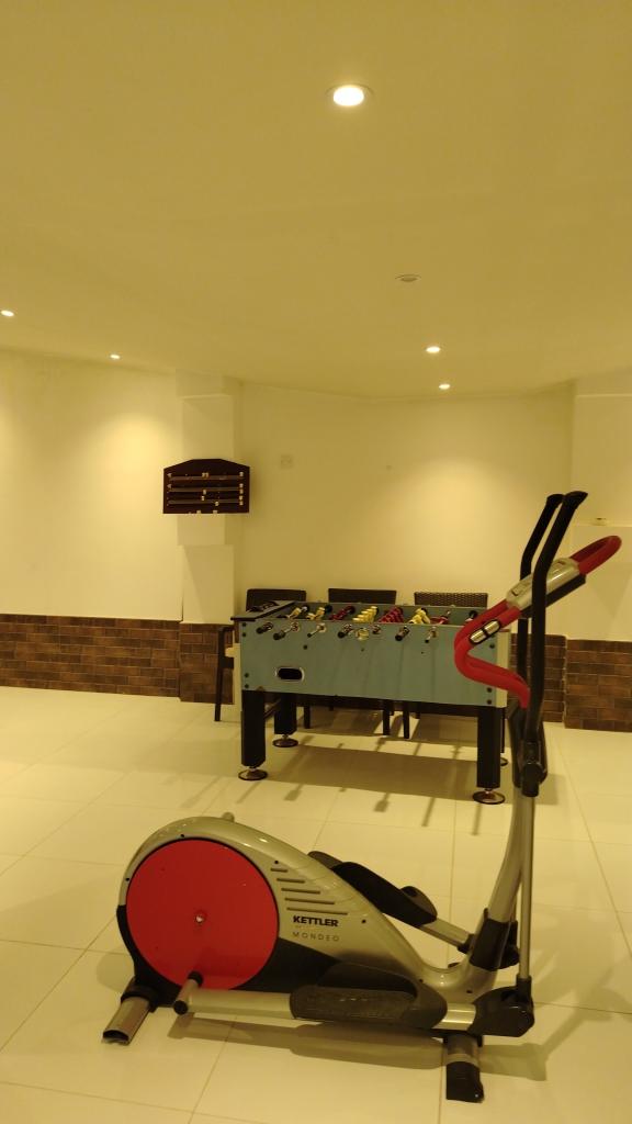 بها أربع غرف و مجلس كبير فيه بعض الألعاب سنوكر و طاولة كرة و جهاز المشي و بها طاولةتنس و ملعب و بركة سباحة