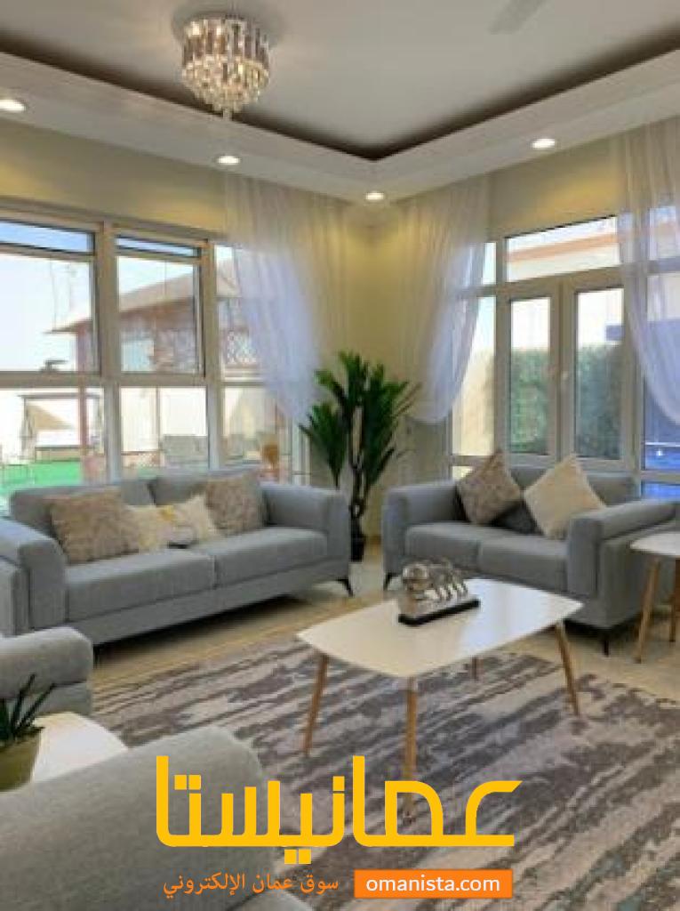 - صالة كبيرة وواسعة مزودة بأثاث عصري وراقي جدا جهزت لقضاء أروع الأوقات العائلية.