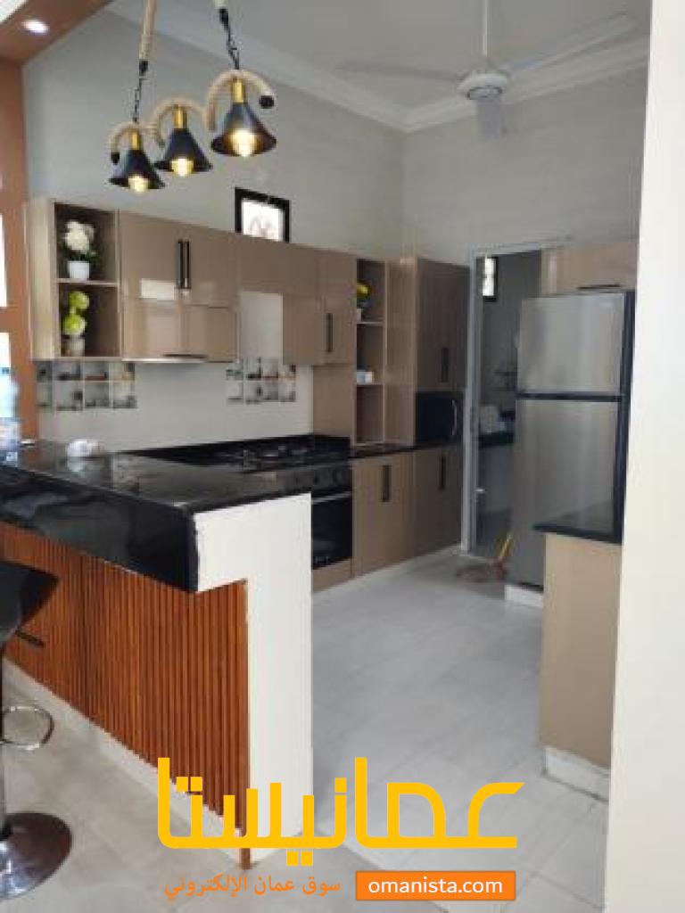 - مطبخ أوربي مفتوح على الصالة وبه جميع المستلزمات.