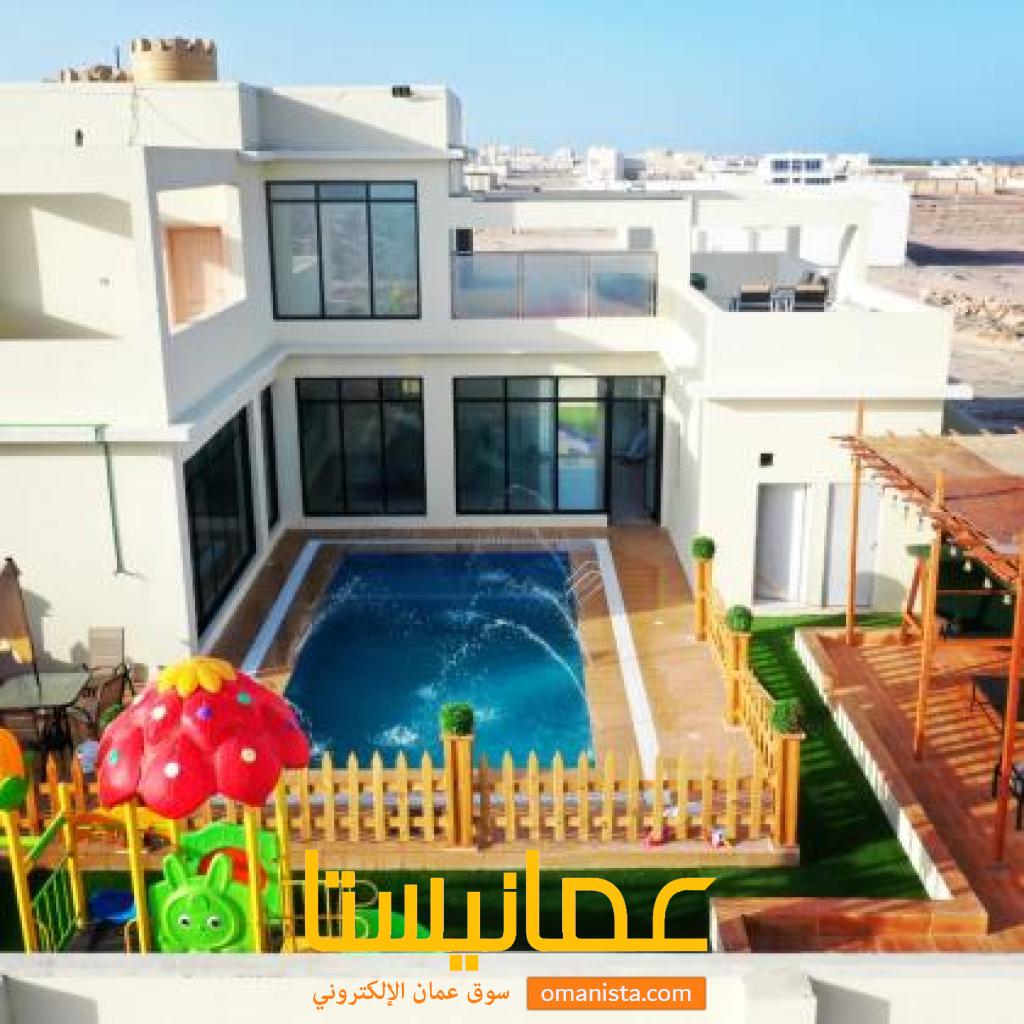 - حوض سباحة مميز بنظام أوفر فلو مع وجود نوافير ولعبة مائية للأطفال.