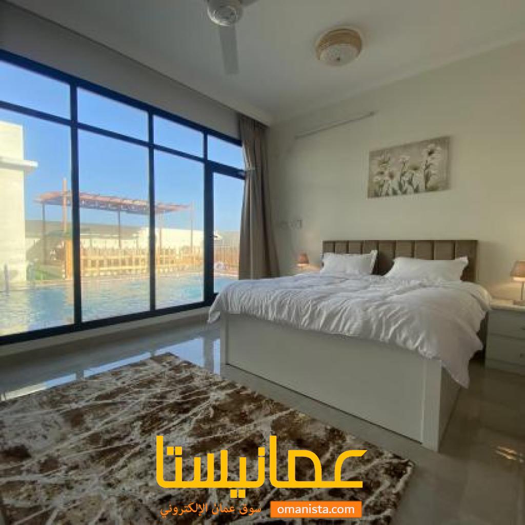 - غرفة ماستر ٥ * ٥ مع دورة مياة واسعة وكذلك مطلة على حوض السباحة والجلسة الخارجة