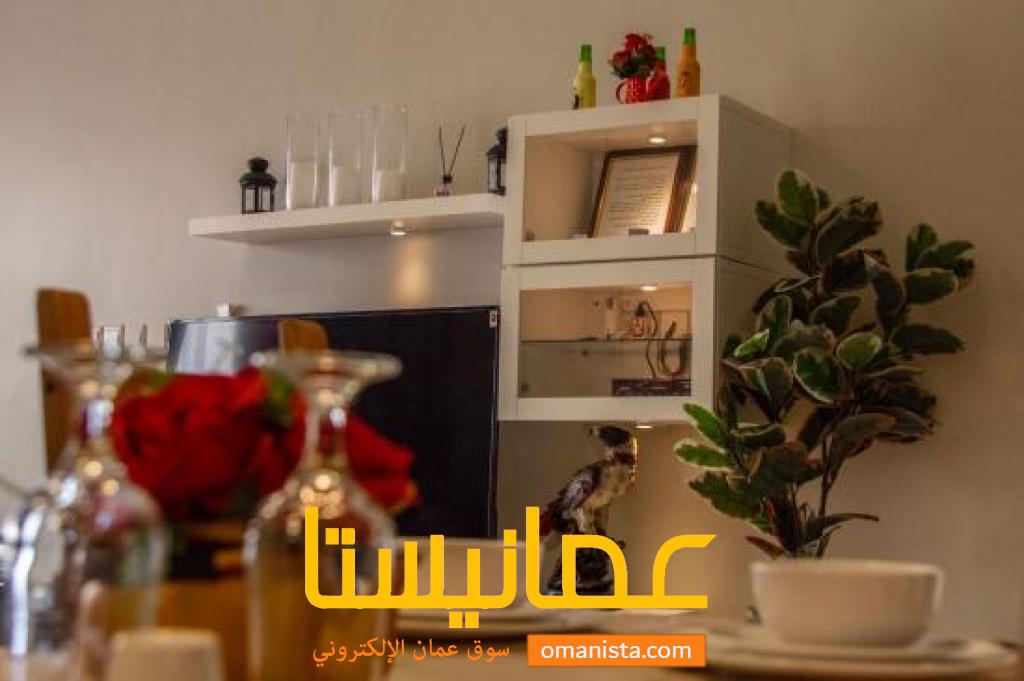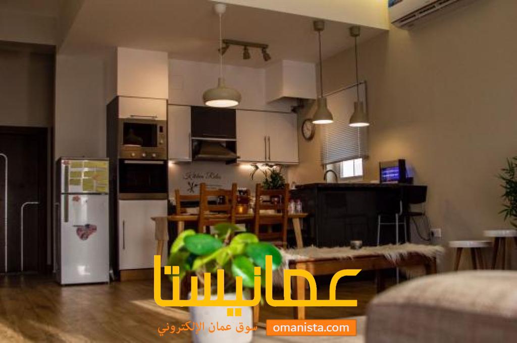 • صالة معيشة بنظام استيديو مع مطبخ داخلي.