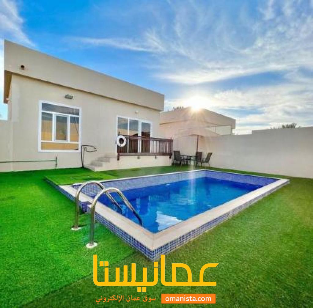 ٢-شاليه غرفتين نوم وصالة جلوس ودورتين مياه وحوش خارجي خاص مع بركة سباحة