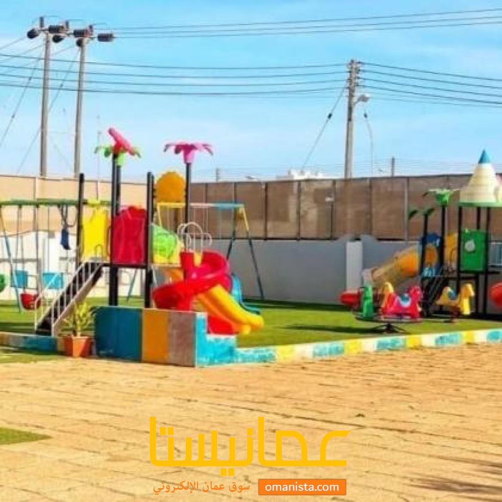 - حديقة ألعاب أطفال كبيرة ونافورات وجلسات شامية