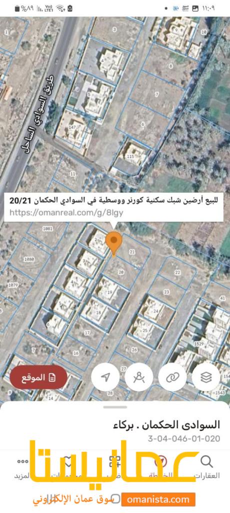 _ للبيع أرضين شبك سكنية كورنر ووسطية ممتازة ، في بركاء في السوادي في الحكمان ( مخطط الهاشمي سابقا) ، حواليها منازل قائمة ، أرقام القطع (20 ، 21) .