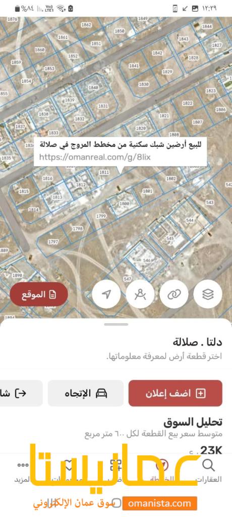 _ للبيع أرضين شبك سكنية ممتازة ، من مخطط اراضي المروج في صلالة ، حواليها منازل قائمة .