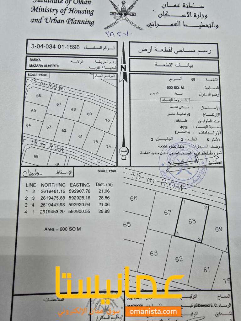 _ مساحة الاراضي : (600 م²) لكل قطعة .