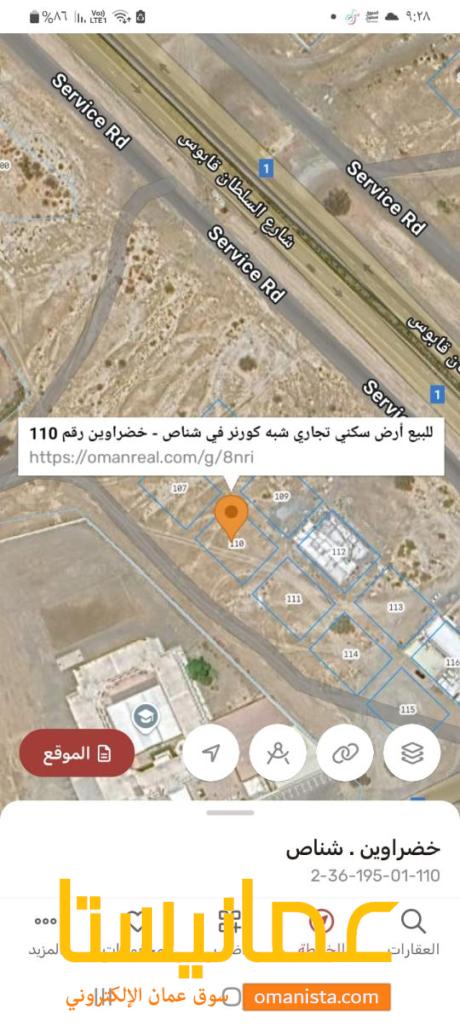 _ للبيع أرض سكنية تجارية شبه كورنر ممتازة ، في شناص - الخضراوين ، بالقرب من منازل قائمة ، رقم القطعة ( 110) .