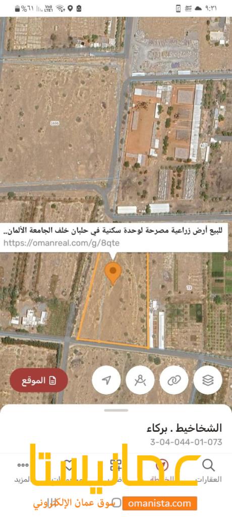 _ للبيع ارض زراعية ممتازة مصرحة لوحدة سكنية ، في بركاء في شخاخيط جنوب ، في حلبان خلف الجامعة الألمانية .