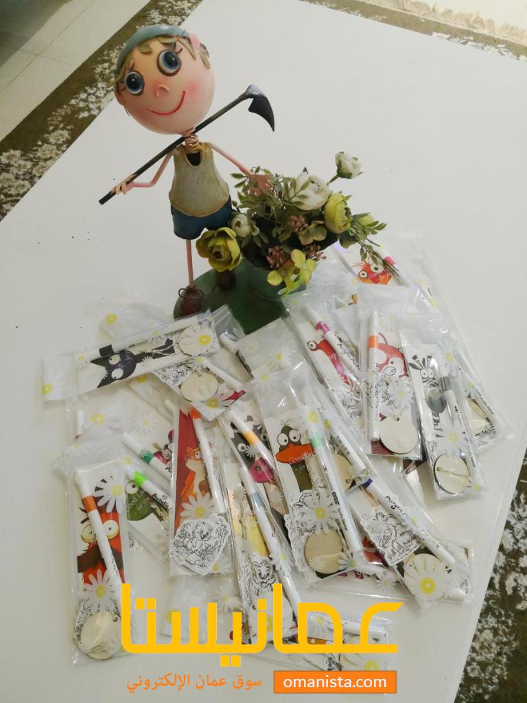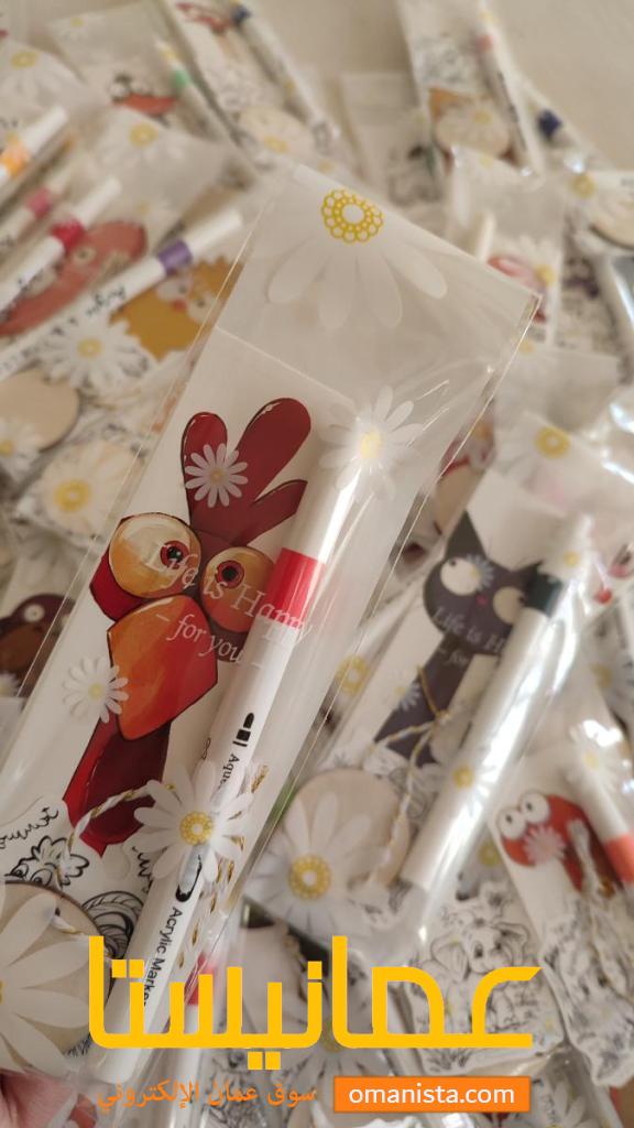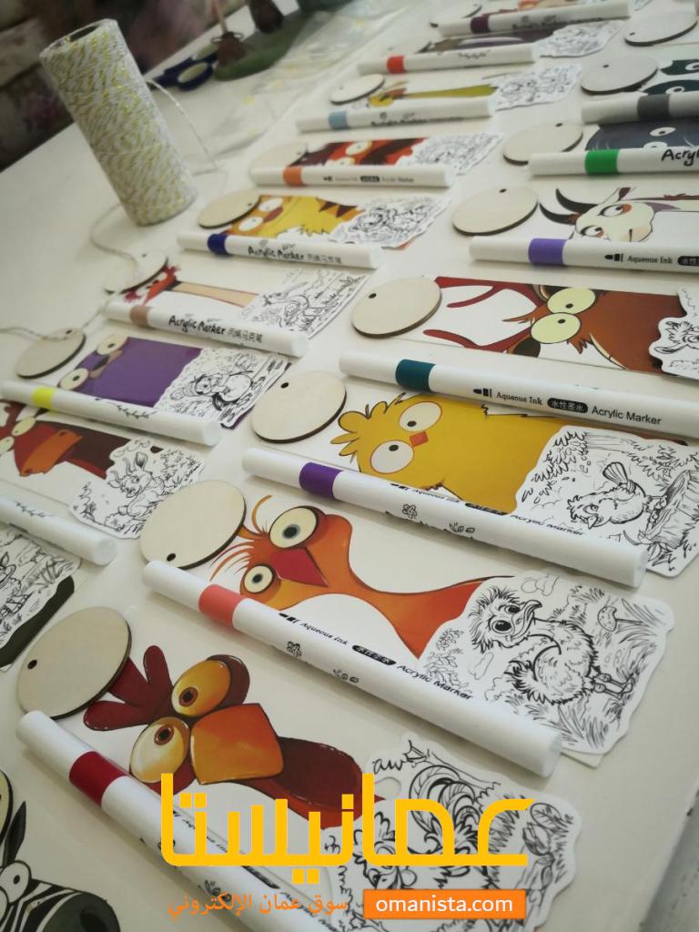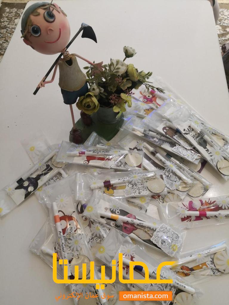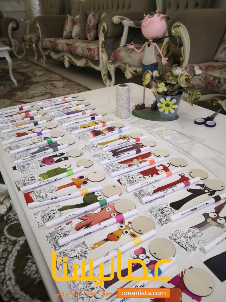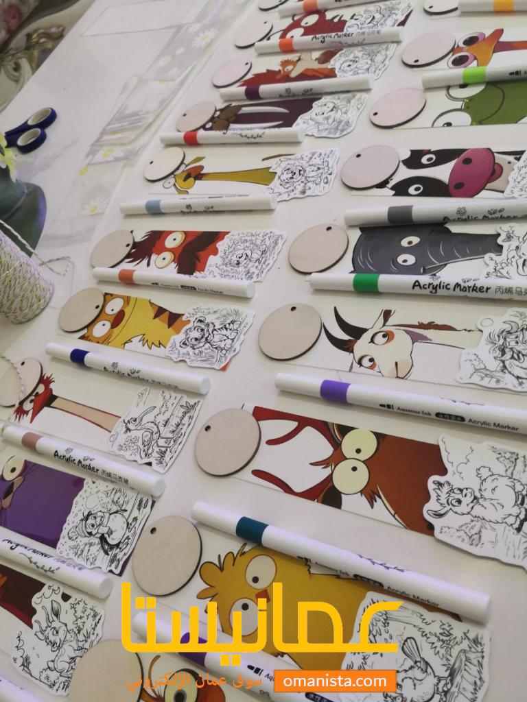 توزيعات أقلام أكريليك مع ميدالية خشبية وملصقات تلوين وفواصل كتب