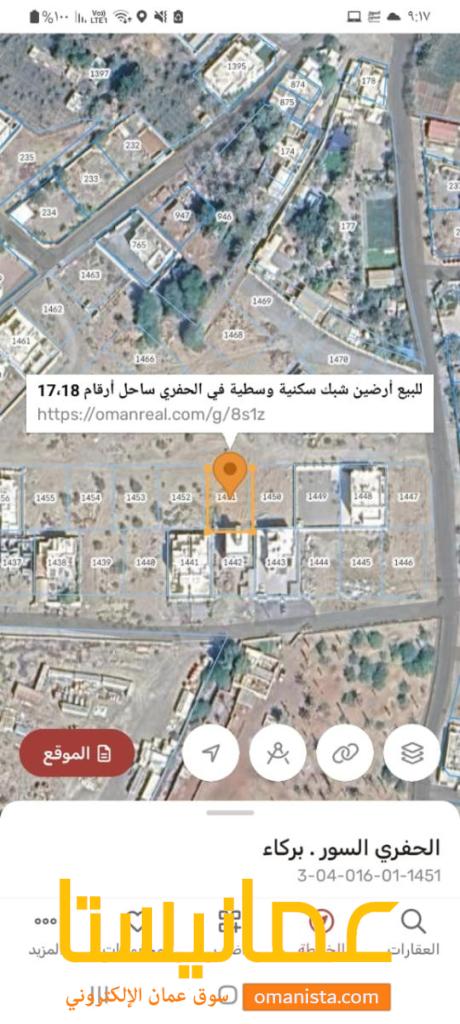 _ للبيع أرضين شبك سكنية وسطية ، في بركاء في الحفري ساحل ، قريبة منهآ منازل قائمة ، أرقام القطع ( 17)، (18)  .