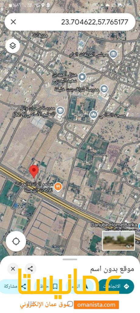 مساحة الأرض 600 م² ، الأرض ممتازة في الخط الأول من شارع السلطان قابوس في غرب دانوب هوم ، وقريبة منهآ مدرسة سحبان وائل ، ومسجد السالمي ، وايضا قريبة منهآ مدارس ومساجد أخرى قائمة ، فرصة للإستثمار .