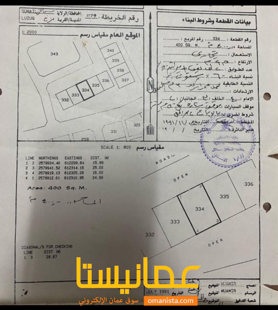 ارض تجاريه سمائل لزغ مساحة 400 متر مطلوب32الف