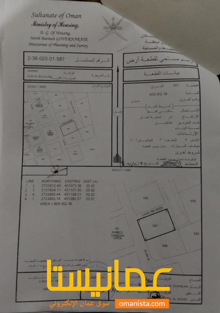 أرض سكنيه زاويه ولاية شناص سور البلوش الشرق | سوق عُمانيستا 2026