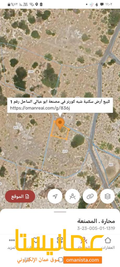 _ للبيع أرض سكنية شبه كورنر ممتازة ، في مصنعة في أبو عبالي الساحل ، قريبة منهآ منازل قائمة ، رقم القطعة ( 1) .