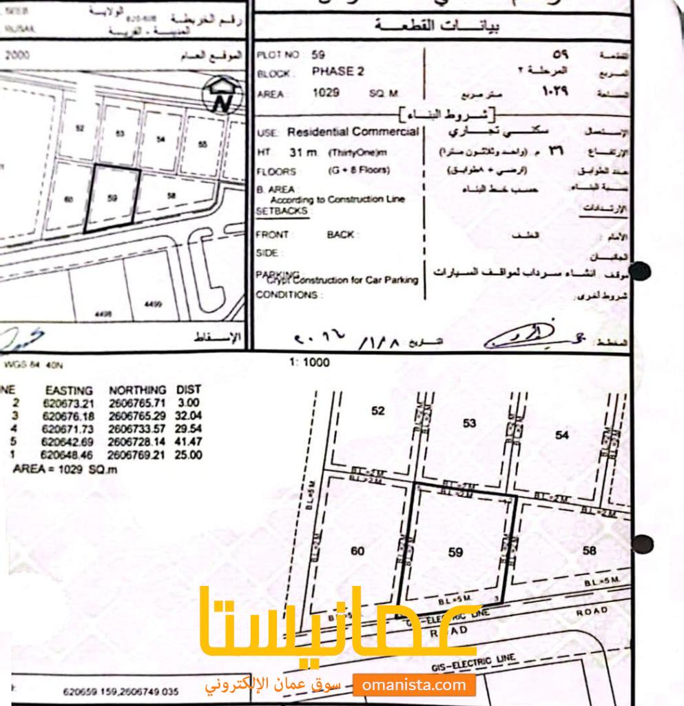 للبيع ارض سكنية تجارية مميزة في الرسيل ، رقم القطعة (59) .