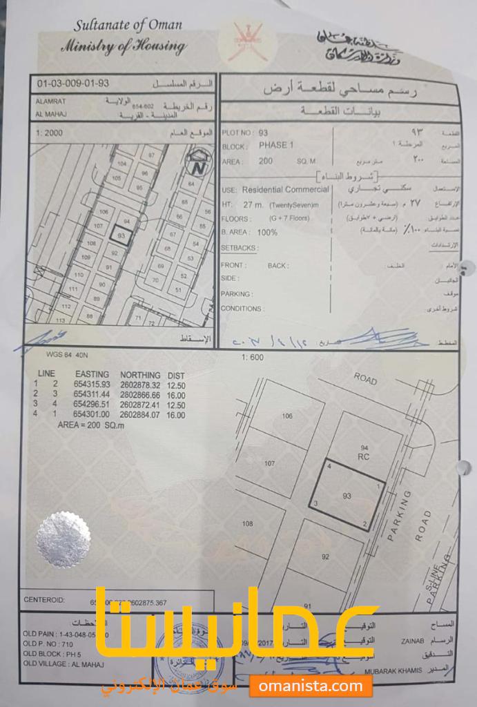 ارض سكنية تجارية مميزة في العامرات المحج رقم القطعة 93 | سوق عُمانيستا 2026