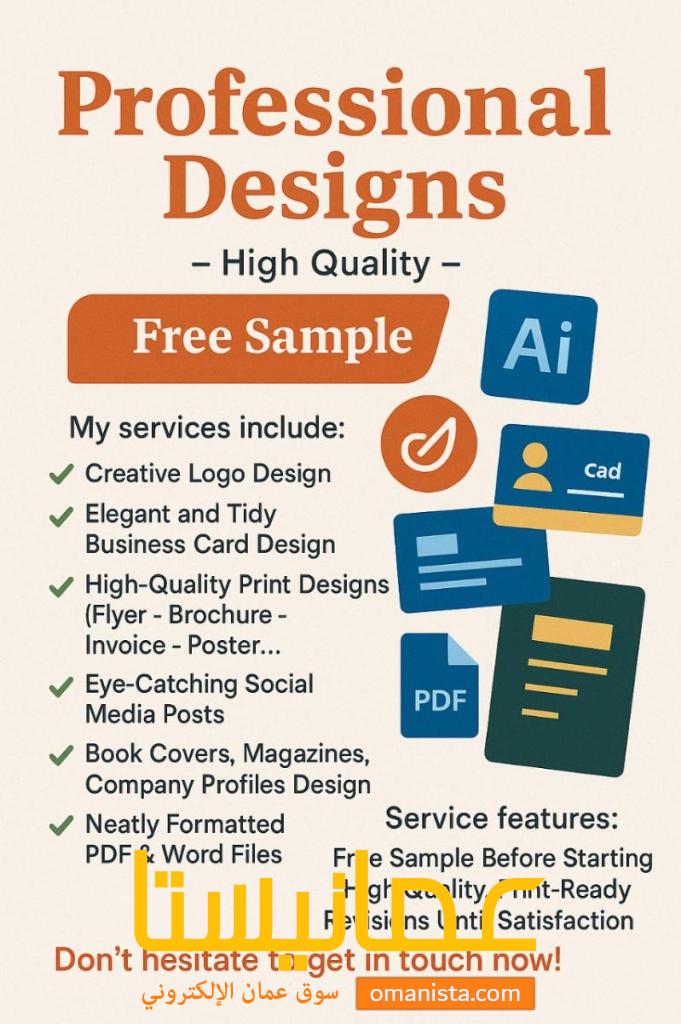 أنا أقدم لك خدمة تصميم شاملة واحترافية تشمل