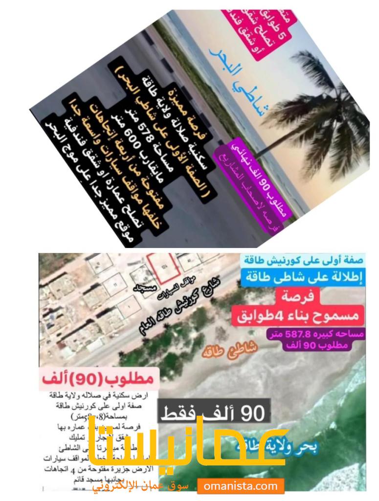 اول خط على شارع البحر ارض للبيع ولاية طاقة | سوق عُمانيستا 2026