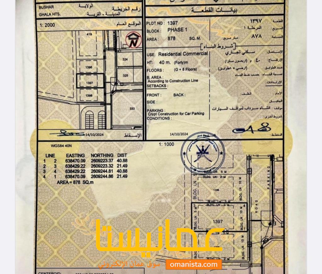 للبيع ارض سكنية تجارية مميزة في مرتفعات غلا ، رقم القطعة (1397) .