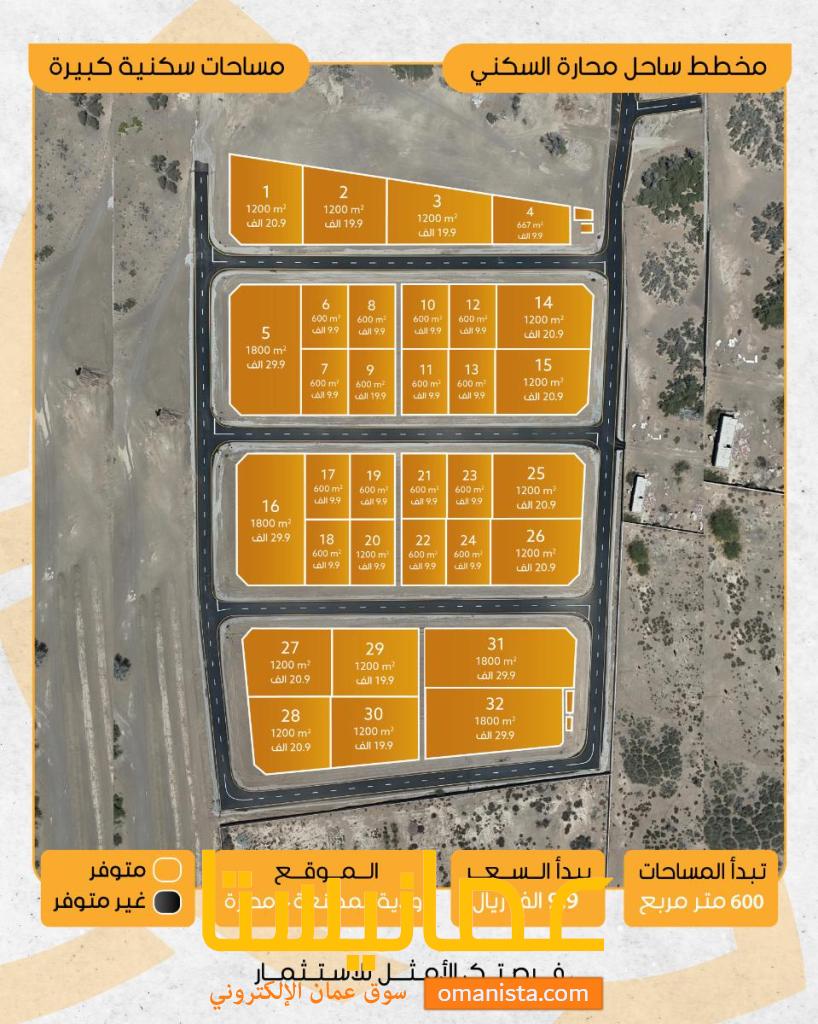 _ للبيع أراضي سكنية مميزة في ساحل محارة السكني بولاية المصنعة .