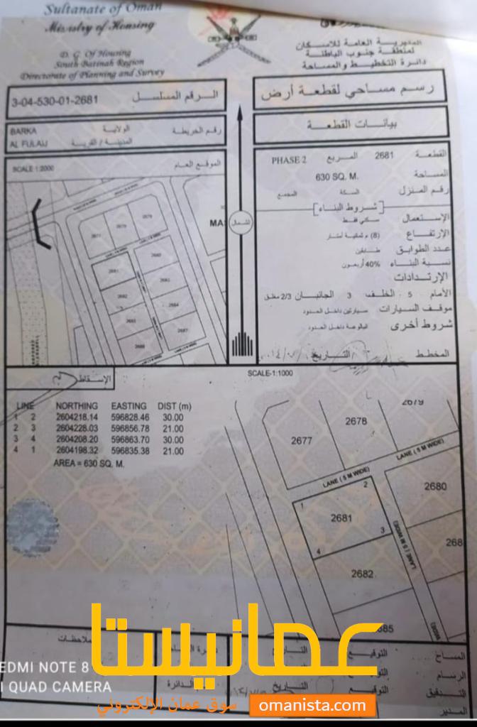 ارض سكنية مميزة في بركاء الفليج 2 رقم القطعة 2681 | سوق عُمانيستا 2025