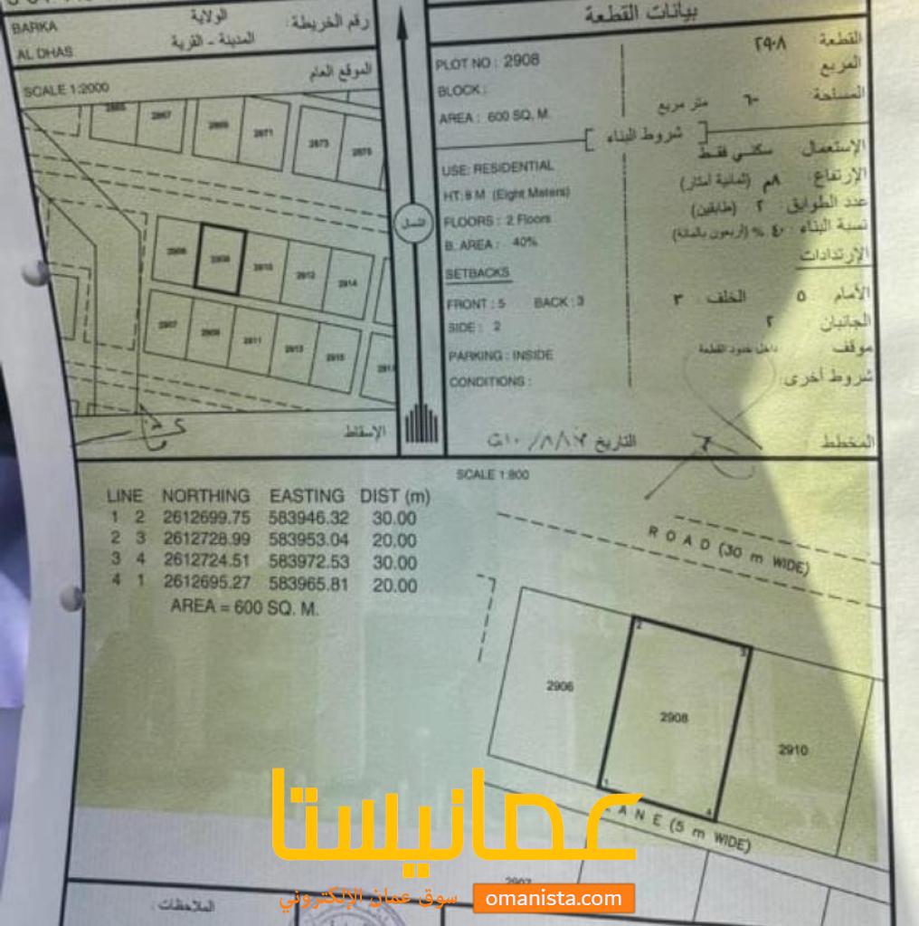 للبيع ارضين شبك ممتازة في بركاء الدهس، رقم القطعة (2908-2910) .
