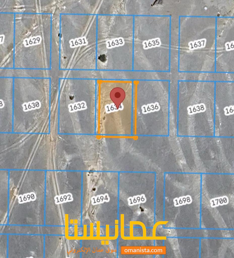 للبيع ارض سكنية ممتازة في بركاء الدهس وسطية ، رقم القطعة (1634) .
