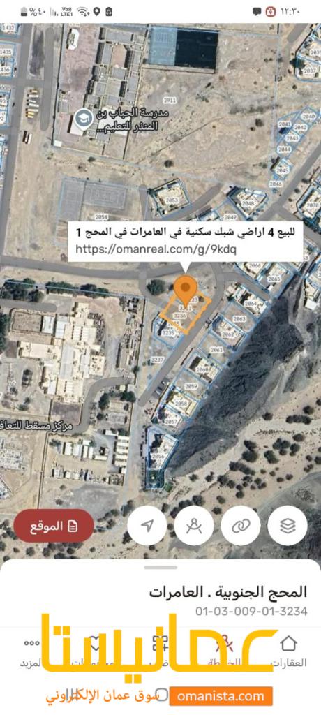 _ للبيع 4 اراضي شبك سكنية مستوية ، في العامرات في المحج الأولى ، حواليها منازل قائمة