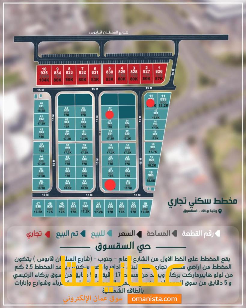 للبيع أراضي سكنية تجارية مميزة في مخطط حي السقسوق بولاية بركاء .