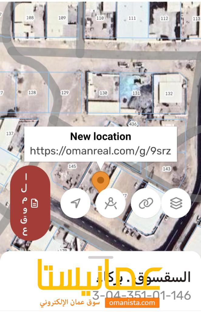 ?للبيع ارض صناعي? *بركاء السقسوق* *المساحة 1000 متر* والارض ع شارع مرصوف فيها دخل شهري 400 ريال ورشة حداده *✨مطلوب 85الف صافي* الموقع ? https://omanreal.com/g/9srz 92180540