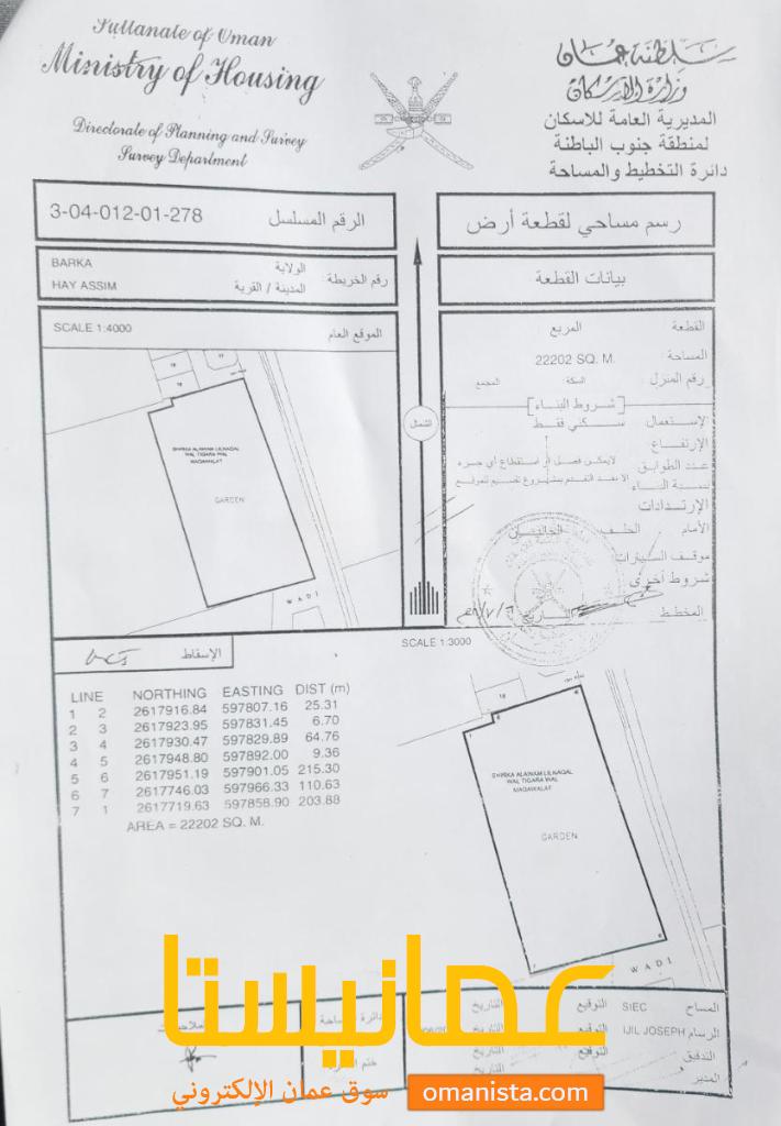 ارض للبيع سكني تجاري في بركاء حي عاصم في موقع مميز قريب الشارع ا | سوق عُمانيستا 2026