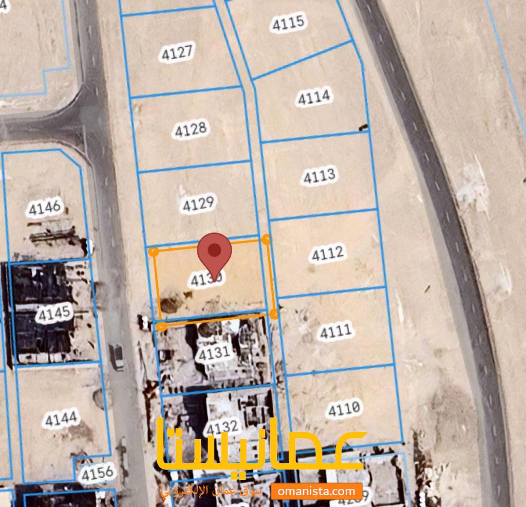 للبيع ارض سكنية ممتازة في بركاء الهرم الشمال وسطية ، رقم القطعة (4130) .