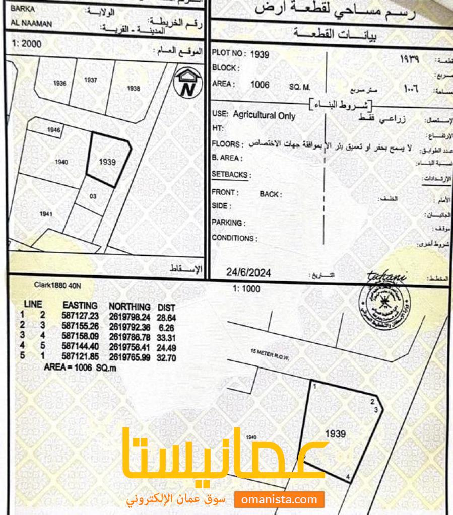 لحاجة المالك بيع ارض زراعيه في النعمان | سوق عُمانيستا 2026